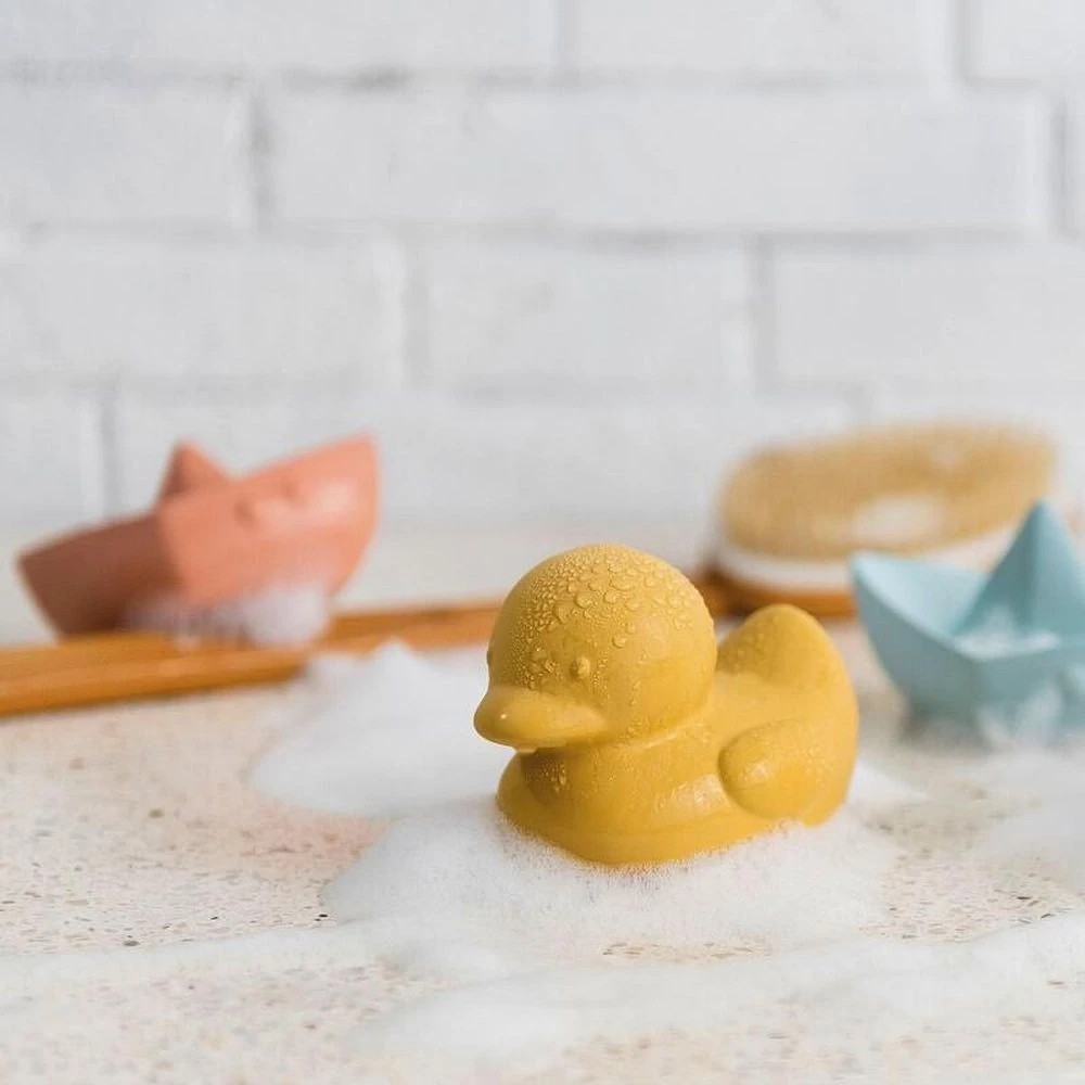 Le Canard caoutchouc ocre de chez Nattou. Cet adorable canard de bain est idéal pour divertir et amuser votre enfant lors du rituel du bain.